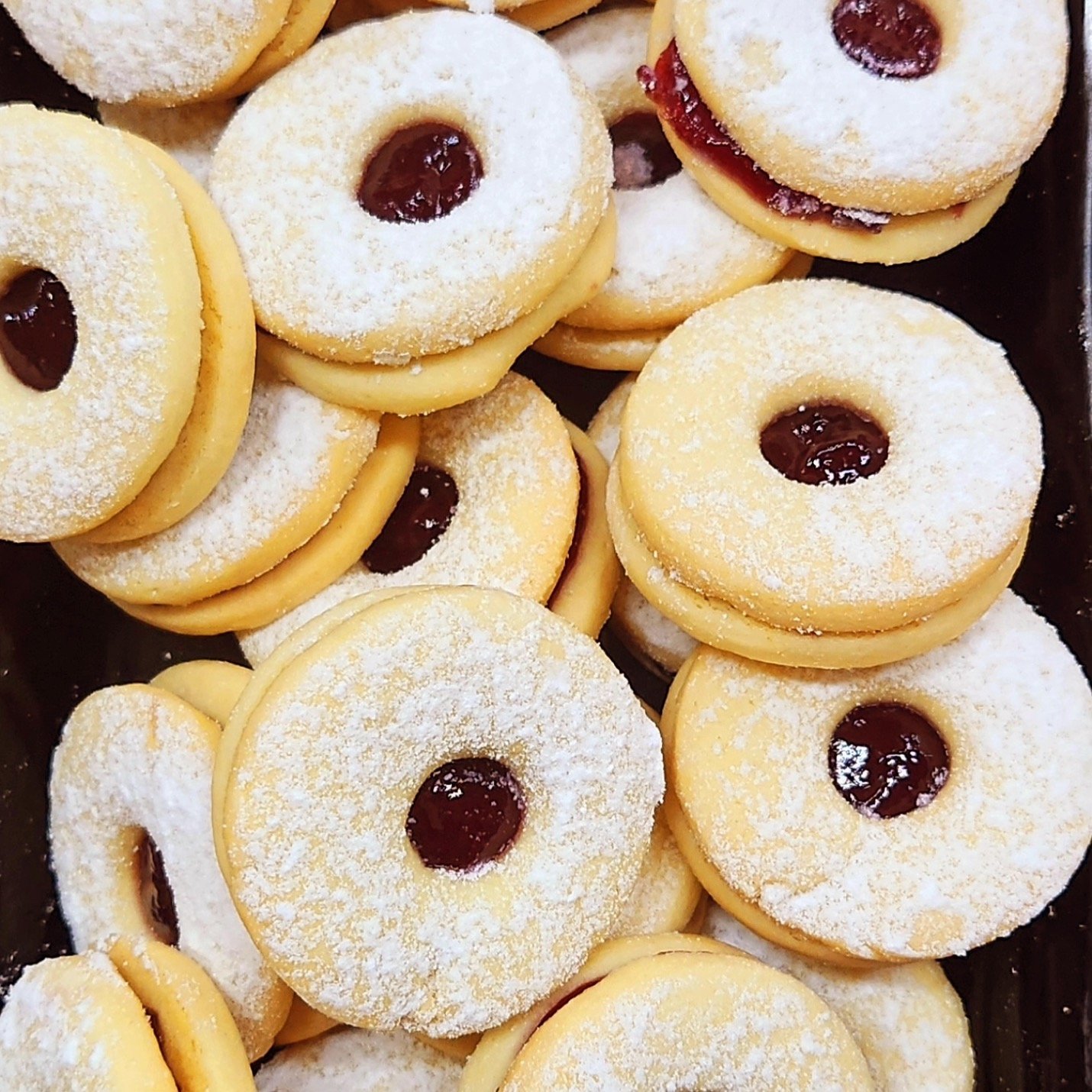 Image 1 of 1 Spitzbuben Raspberry $8.00 Buttery short pastry with raspberry jam.Six (6) cookies per pack. Quantity: Add To Cart Added! Buttery short pastry with raspberry jam.Six (6) cookies per pack.